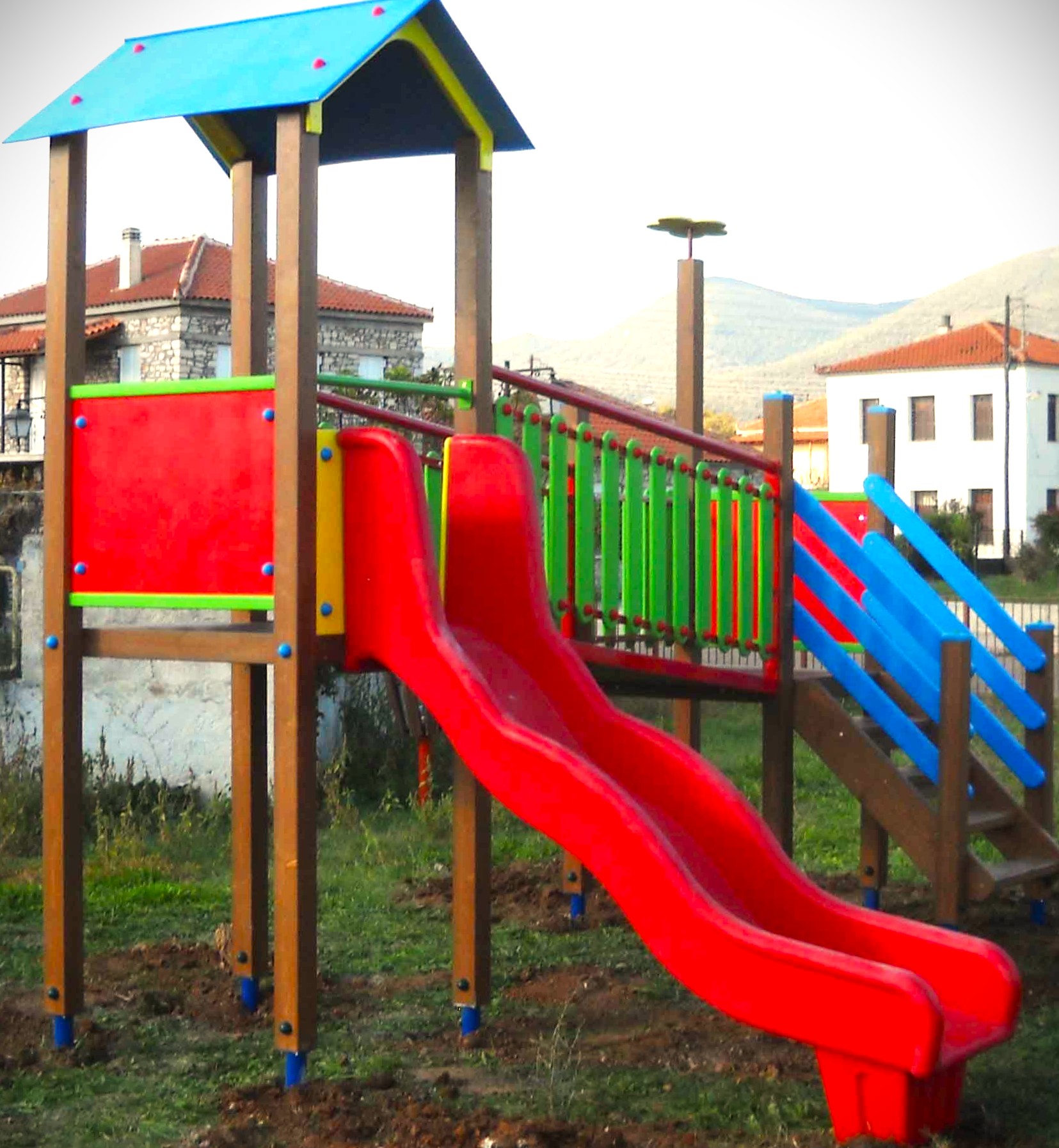 - Κυματιστή πλαστική τσουλήθρα: Η τσουλήθρα είναι ευθεία με μεταβολές κλίσης κατά μήκος της ζώνης ολίσθησης. Κατασκευάζεται με τη μέθοδο της περιστροφικής εκχύλισης σε καλούπια και είναι μονοκόμματη χωρίς αιχμηρές άκρες. Αποτελείται από χαμηλής πυκνότητας πολυαιθυλένιο, με προσθήκη υλικών που παρέχουν προστασία από την υπεριώδη ακτινοβολία και τον στατικό ηλεκτρισμό. Στη ζώνη εισόδου του χρήστη διαθέτει προστατευτική εγκάρσια μπάρα από σιδηροσωλήνα Φ26.
