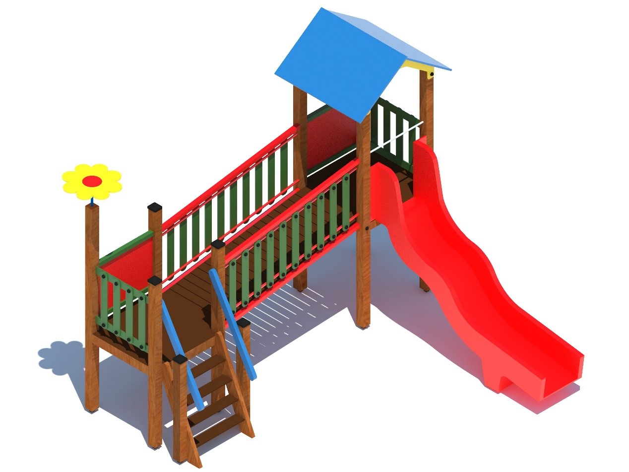 - Κεκλιμένη γέφυρα: Η κεκλιμένη γέφυρα αποτελείται από έναν (1) διάδρομο από κοιλοδοκούς 60mm x 40mm, δύο (2) ορθογωνικά πλαίσια από κοιλοδοκούς 32mm x 20mm, πάνω στα οποία προσαρμόζονται τα κάγκελα από ξυλοδοκούς 95mm x 35mm και δύο (2) κουπαστές από σιδηροσωλήνα Φ42mm. Η κεκλιμένη γέφυρα προσαρμόζεται στις ελεύθερες πλευρές των πλατφορμών.