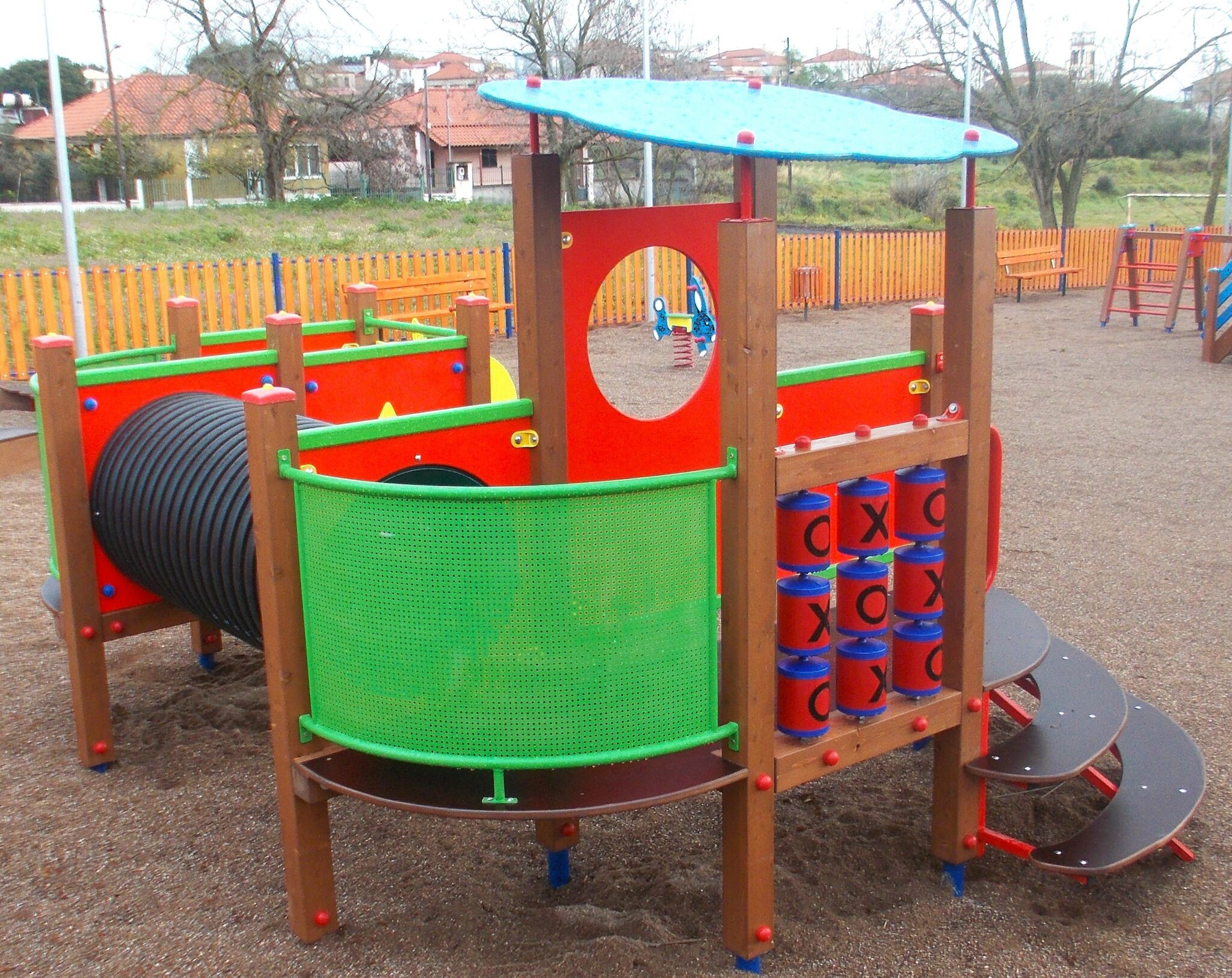 - Ανοξείδωτη τσουλήθρα: Η τσουλήθρα είναι ευθεία χωρίς αλλαγές πορείας ή κλίσης στο μήκος της. Η επιφάνεια κύλισης κατασκευάζεται από ανοξείδωτη λαμαρίνα πάχους 1mm χωρίς αιχμηρές άκρες ή γωνίες. Εκατέρωθεν της επιφάνειας κύλισης και κατά μήκος της τοποθετούνται πλαϊνά από κόντρα πλακέ θαλάσσης. Στη ζώνη εισόδου του χρήστη διαθέτει πλευρική προστασία από κόντρα πλακέ θαλάσσης με μορφή ζώων και προστατευτική εγκάρσια μπάρα από σιδηροσωλήνα Φ26.