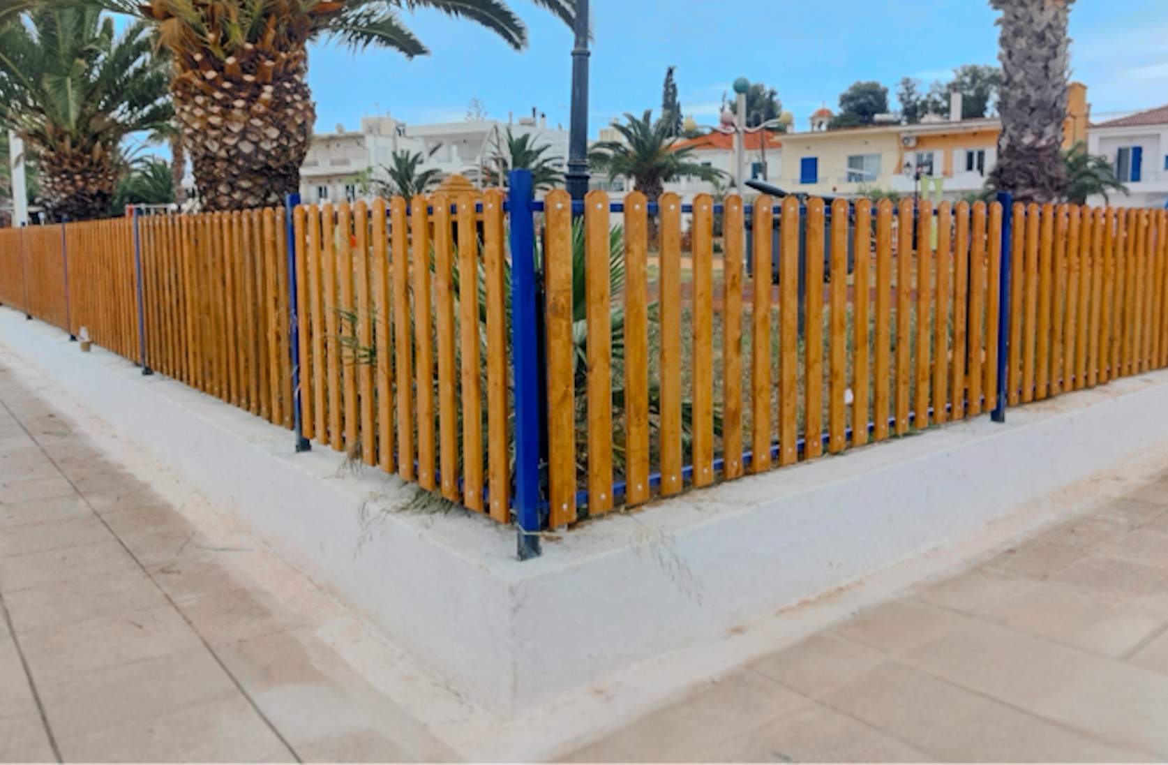 Ξύλινη περίφραξη με μεταλλικό σκελετό