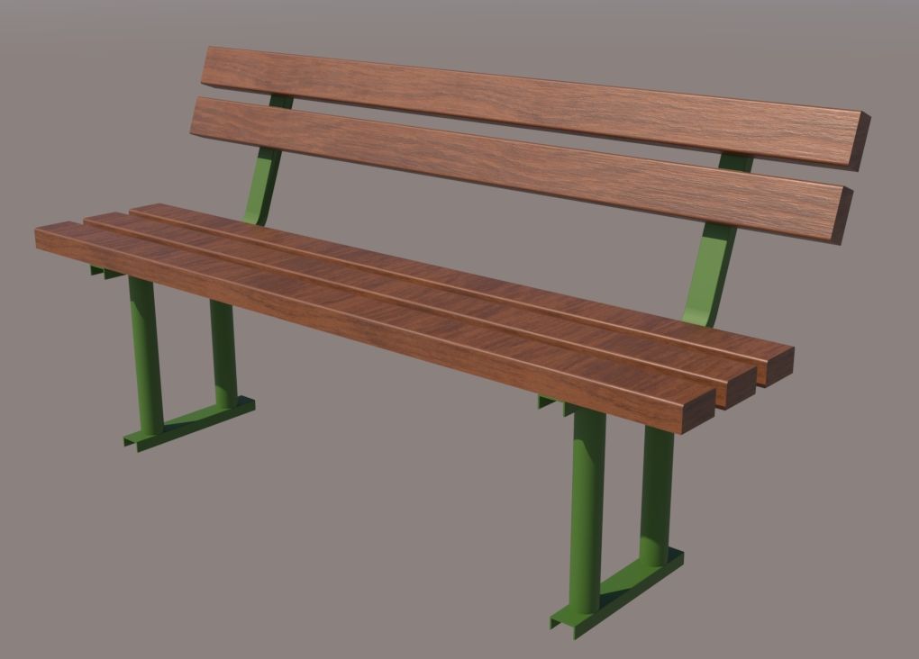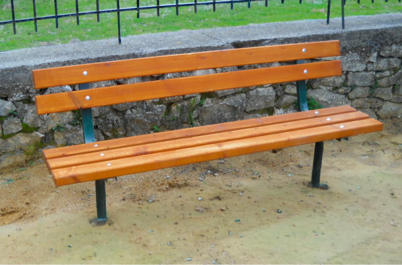 Οι βάσεις είναι κατασκευασμένες από σιδηροδοκούς UPN 50x25mm, όπου εδράζονται τα ξύλινα μέρη και χαλύβδινους σωλήνες διατομής Ø48,3×2,5mm και μήκους 0,80m για τα πόδια. Το κάθισμα αποτελείται από τρία (3) ξύλινα τεμάχια, ενώ η πλάτη από δύο (2), όλα διατομής 45x95mm και μήκους 1,80m. Τα μεταλλικά μέρη προστατεύονται από τις ατμοσφαιρικές συνθήκες και την καθοδική διάβρωση με δύο στρώσεις χρώματος, ενώ τα ξύλινα στοιχεία έχουν δεχθεί επεξεργασία με μυκητοκτόνο – βιοκτόνο συντηρητικό ξύλων και ελαστικό βερνίκι νερού για αδιαβροχοποίηση και προστασία από την υπεριώδη ακτινοβολία.